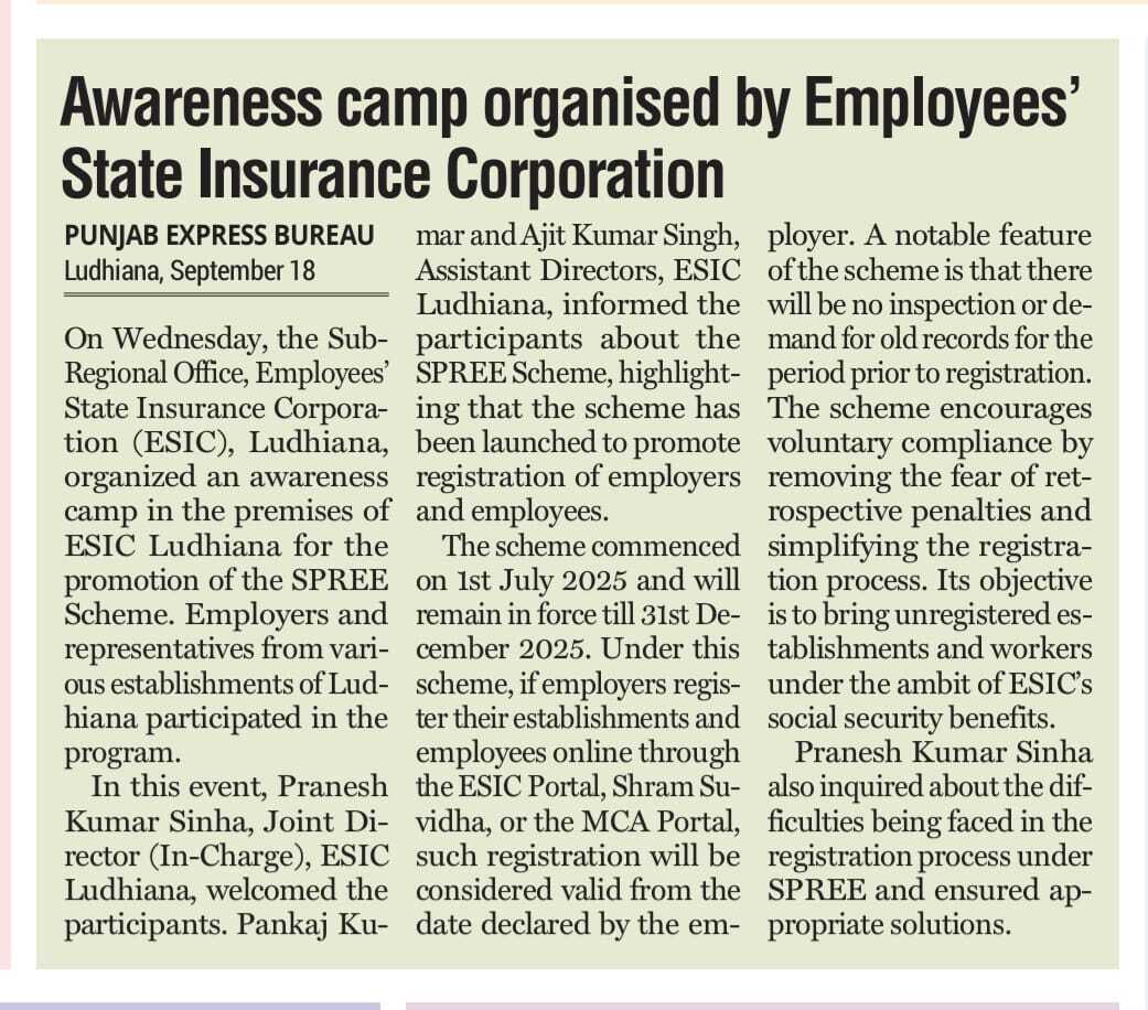 Awareness Camp Organised by Employees' State Insurance Corporation size:()PDF IconPublish Date: 19/09/2025